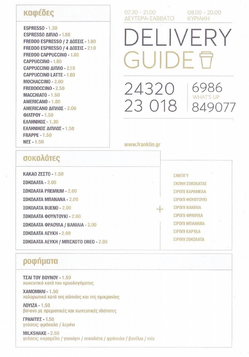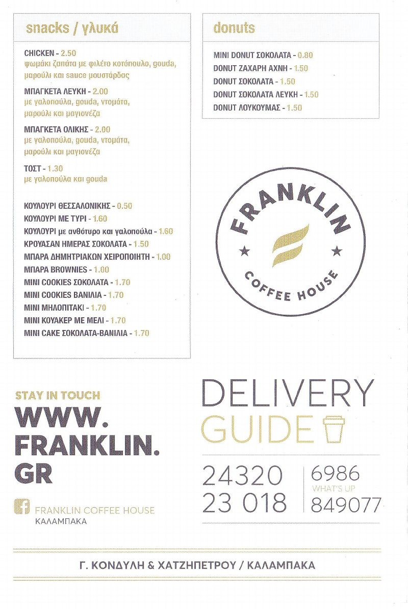 Στην οδό Γ. Κονδύλη και Χατζηπέτρου, στην πλατεία Ρήγα Φεραίου Καλαμπάκας λειτουργεί το Cafe FRANKLIN με τον καλύτερο καφέ της πόλης!