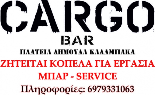 Cargo Bar – Ζητείται κοπέλα για εργασία Από το CARGO BAR της Καλαμπάκας ζητείται κοπέλα για εργασία. Διάφορα Από admin Δημοσίευση Ιούν 12, 2017 -15:18 0 325 Κοινοποίηση FacebookTwitterΗλεκτρονικό ΤαχυδρομείοViber Από το CARGO BAR της Καλαμπάκας ζητείται κοπέλα για εργασία. Από το CARGO BAR της Καλαμπάκας ζητείται κοπέλα για εργασία. 0 325 Κοινοποίηση