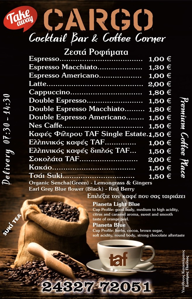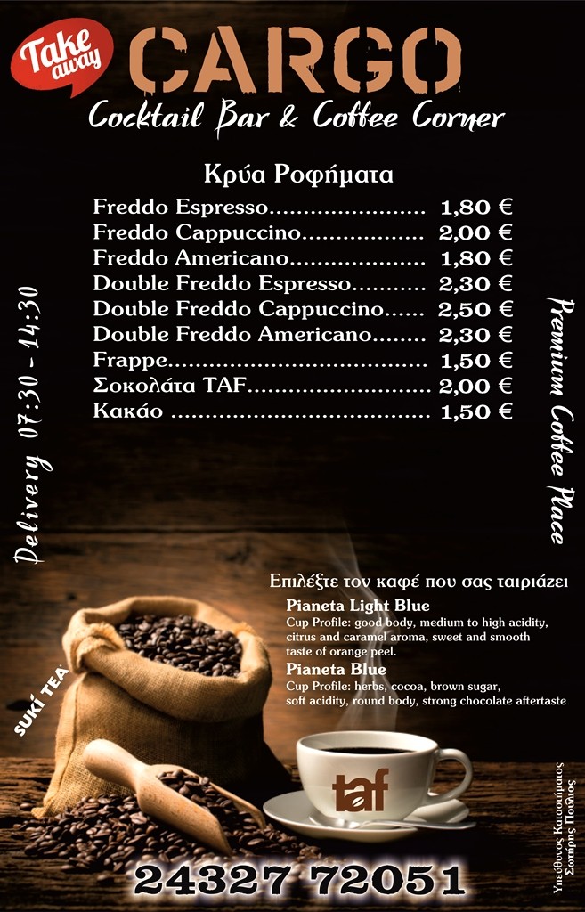 CARGO Cocktail Bar & Coffee Corner – Take Away και Delivery