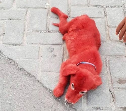 Ένα απίστευτο θέαμα αντίκρισαν κάτοικοι της Χαλκίδας όταν είδα ένα κουτάβι βαμμένο κόκκινο να περιπλανιέται στους δρόμους.