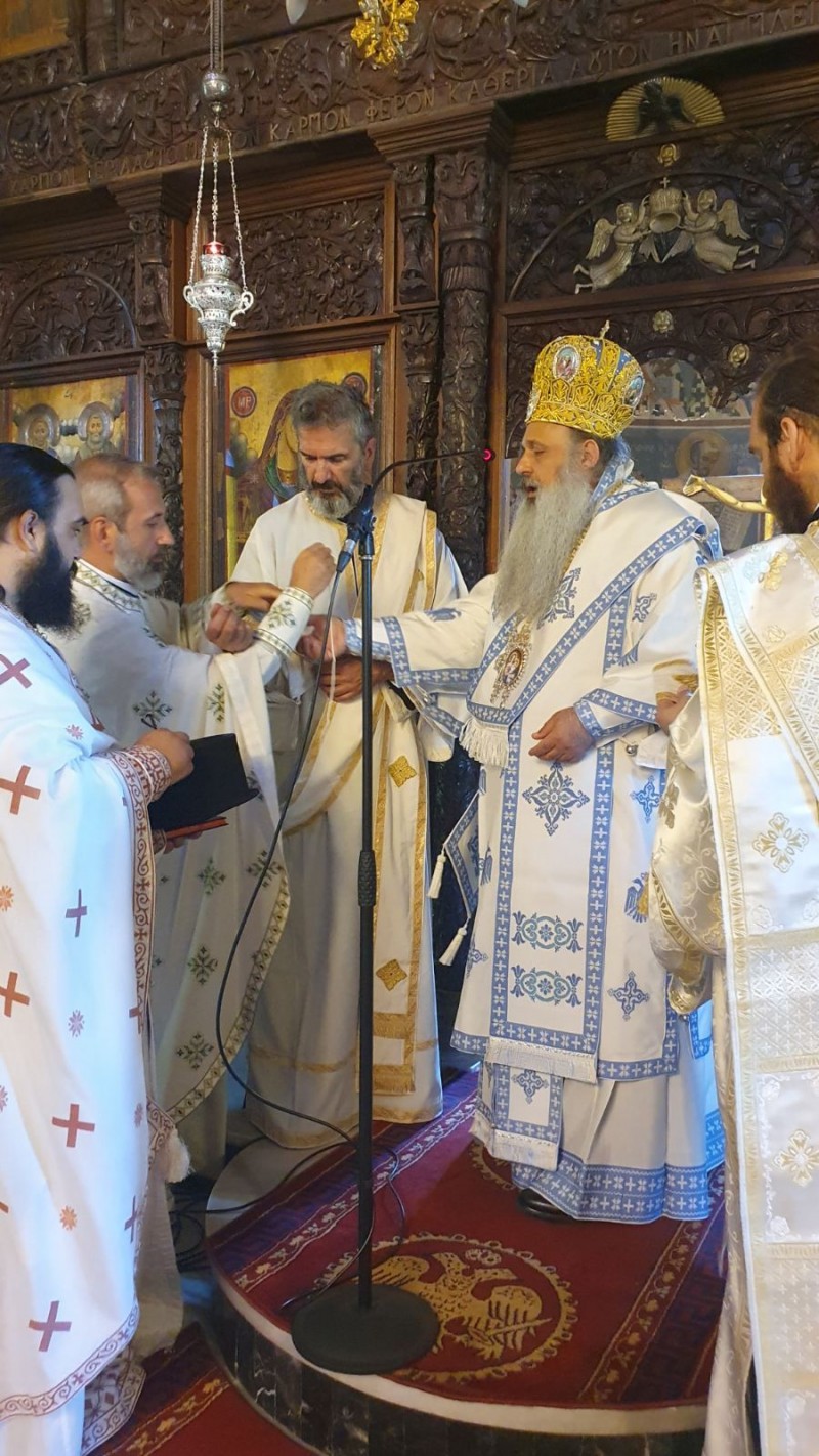 Κατά την διάρκεια της θείας Λειτουργίας, ο Μητροπολίτης μας τέλεσε την εις Διάκονον χειροτονία του μοναχού Παναρέτου, ο οποίος με χαρά και φόβο Θεού έλαβε τον πρώτο βαθμό της Ιερωσύνης. Προς τον Διάκονο ο Ποιμενάρχης μας μίλησε με πατρικά λόγια, τονίζοντας ότι κατά την στιγμή αυτή αλλάζει όλη του η ζωή και οφείλει να αφοσιωθεί με περισσότερο ζήλο και αυταπάρνηση στην διακονία της Εκκλησίας και των μυστηρίων της.