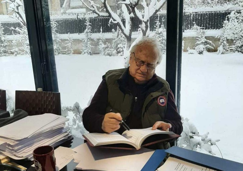 Το χιόνι και το δριμύ ψύχος δεν ανέκοψαν τους ρυθμούς εργασίας και το πάθος του πρώην υπουργού Σωτήρη Χατζηγάκη απέναντι στις πνευματικές του ενασχολήσεις, δηλαδή την μελέτη και συγγραφή.