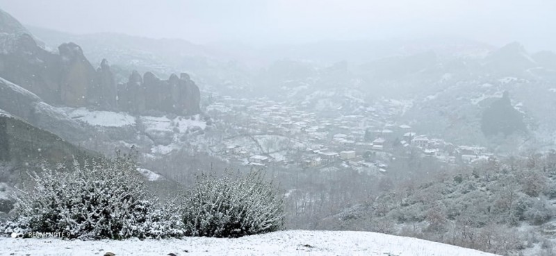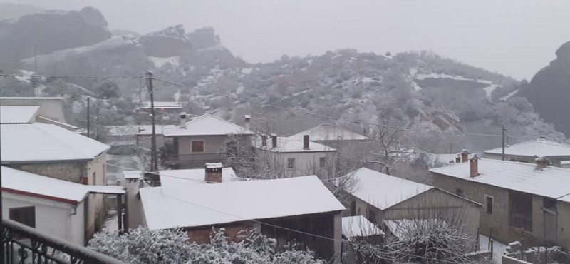 Ασταμάτητη είναι η χιονόπτωση στον Δήμο Μετεώρων με τα χωριά αλλά και την Καλαμπάκα να καλύπτονται από το χιόνι.