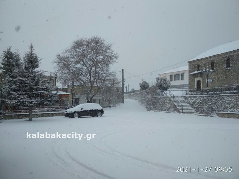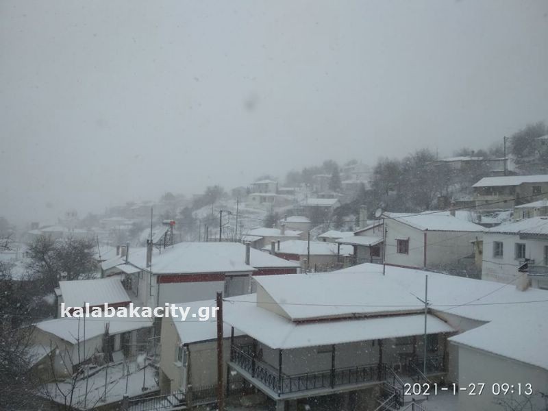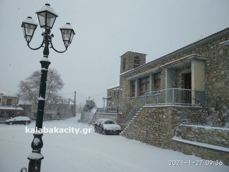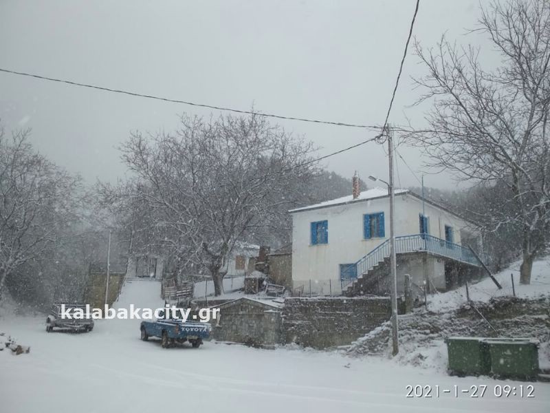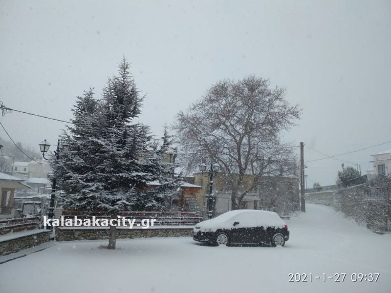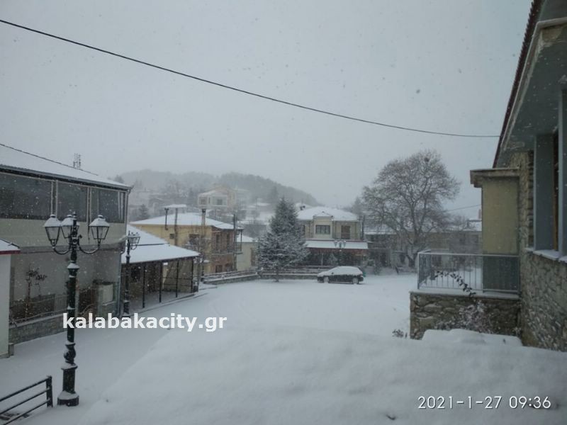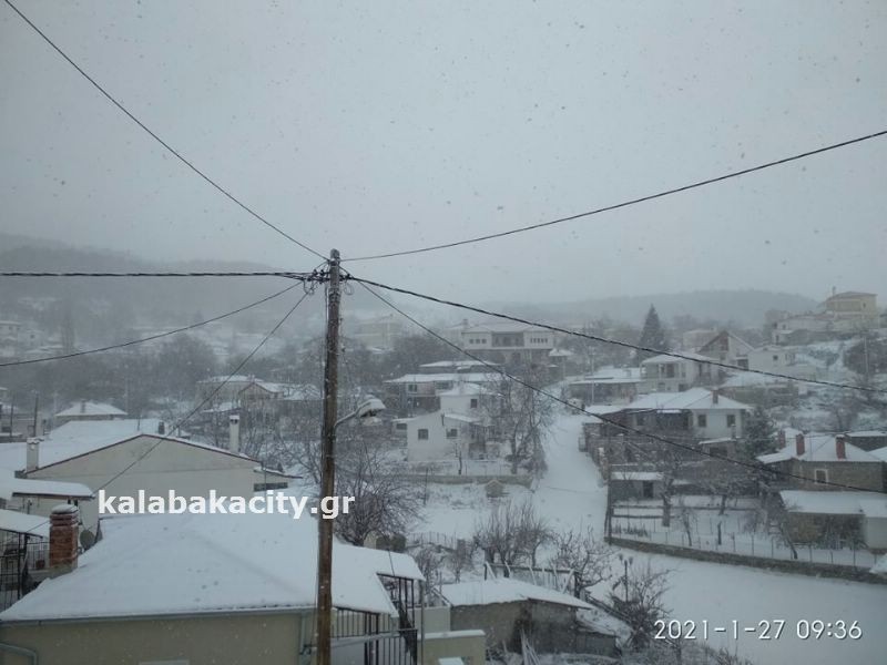 Χιονίζει στην περιοχή του Μαυρελίου – Λογγά του Δήμου Μετεώρων σύμφωνα με εικόνα που έχουμε από την περιοχή.