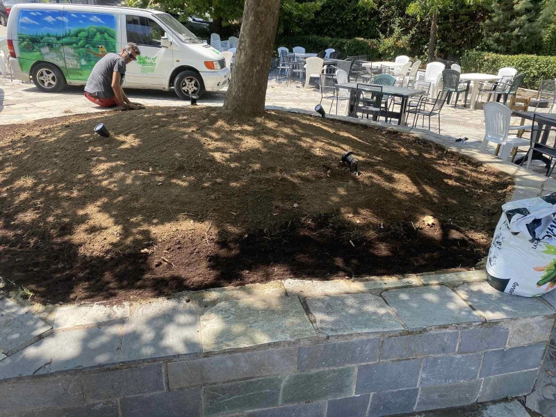 Σήμερα τοποθετήθηκε χλοοτάπητας στην πλατεία και στο μνημείο της Αγναντιάς.