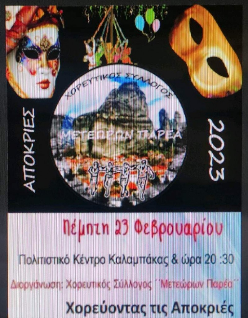 Η συνάντηση μας ορίζεται για τη Πέμπτη 23 Φεβρουαρίου και ώρα 8:30μ.μ. στο Πολιτιστικό Κέντρο του Δήμου Μετεώρων.