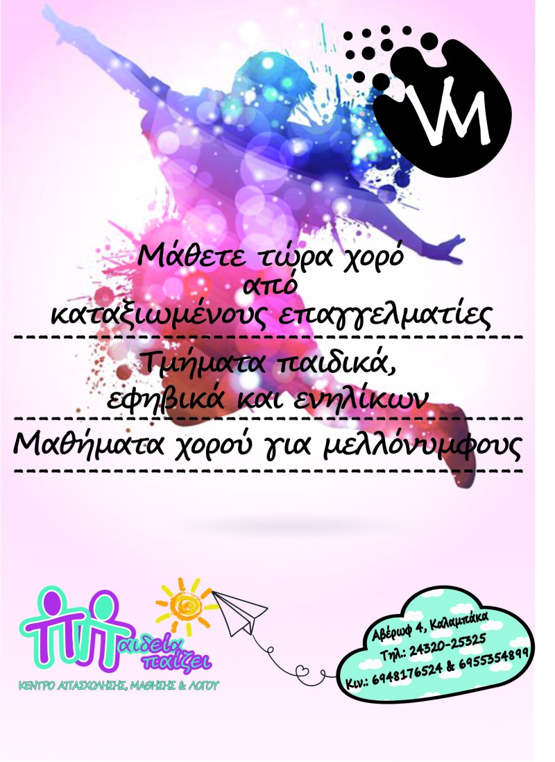 Χορός για όλες τις ηλικίες και για μελλόνυμφους τώρα στο ΠΑΙΔΕΙΑ ΠΑΙΖΕΙ Ανακοινώσεις Από admin Δημοσίευση Σεπ 11, 2019 -0:01 0 534 Κοινοποίηση FacebookTwitterΗλεκτρονικό ΤαχυδρομείοViber Στο κέντρο ΠΑΙΔΕΙΑ ΠΑΙΖΕΙ της πόλης μας, μάθετε χορό από καταξιωμένους επαγγελματίες. Λειτουργούν Τμήματα παιδικά, εφηβικά και ενηλίκων. Επίσης μαθήματα χορού για μελλόνυμφους! 0 534 Κοινοποίηση