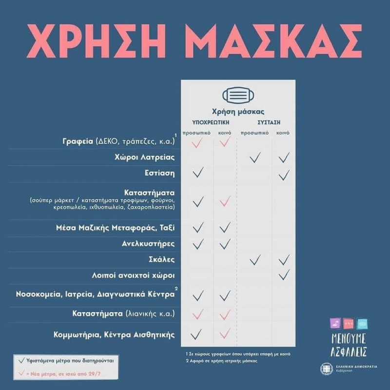 Υποχρεωτική θα είναι από σήμερα Τετάρτη, 29Ιουλίου για όλους η χρήση της μάσκας: