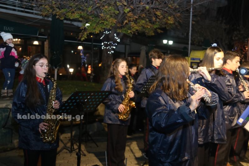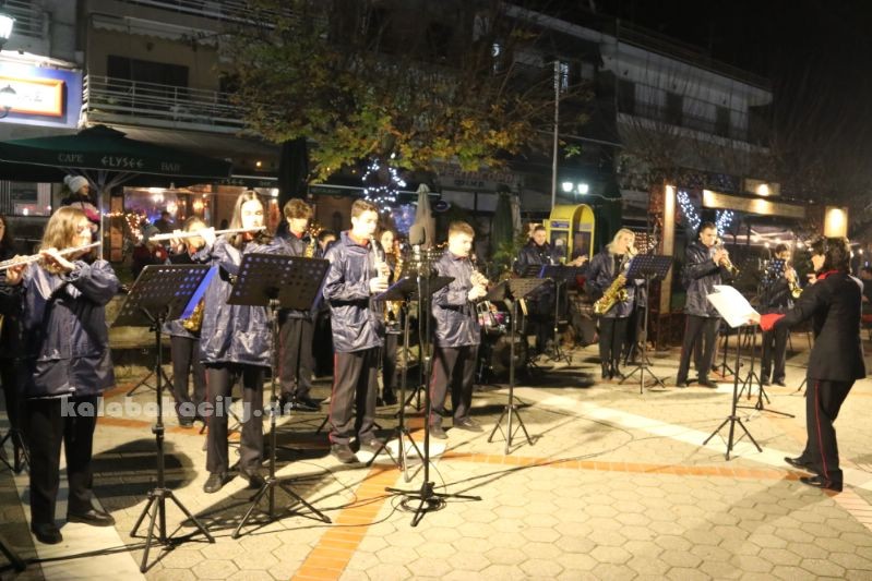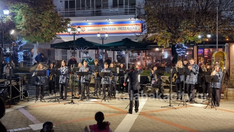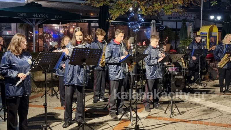 Χριστουγεννιάτικη ατμόσφαιρα δημιούργησε το βράδυ της Τρίτης η Φιλαρμονική του Δήμου Μετεώρων στην πλατεία Ρήγα Φεραίου Καλαμπάκας.
