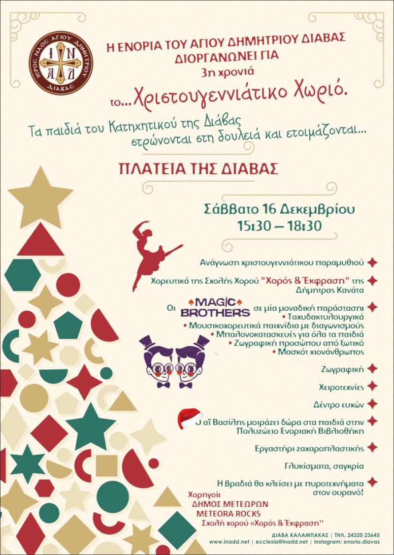 Η ΕΝΟΡΙΑ ΤΟΥ ΑΓΙΟΥ ΔΗΜΗΤΡΙΟΥ ΔΙΑΒΑΣ ΔΙΟΡΓΑΝΩΝΕΙ για 3η χρονιά το … Χριστουγεννιάτικο Χωριό.