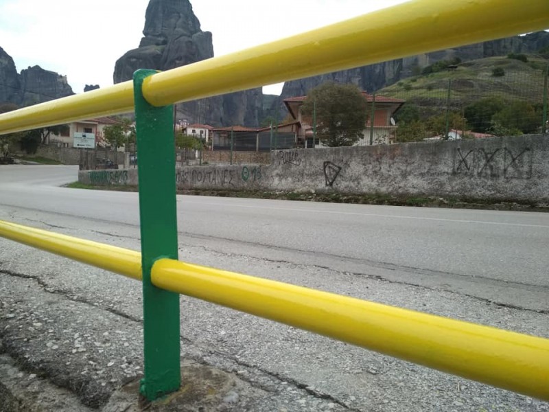 Ο πρόεδρος του χωριού κ. Γιώργος Γκόγκος, με τον τον Τ. Σ. Νίκο Παπούλια και τον κάτοικο – εθελοντή στην προσπάθεια Γιώργο Μουσιαντά έβαψαν τα σκουριασμένα και παρατημένα κάγκελα για χρόνια, που βρίσκονται επάνω στον δρόμο στον κεντρικό δρόμο του χωριού.