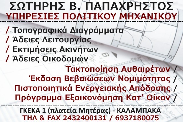 ΣΩΤΗΡΗΣ Β. ΠΑΠΑΧΡΗΣΤΟΣ – ΥΠΗΡΕΣΙΕΣ ΠΟΛΙΤΙΚΟΥ ΜΗΧΑΝΙΚΟΥ