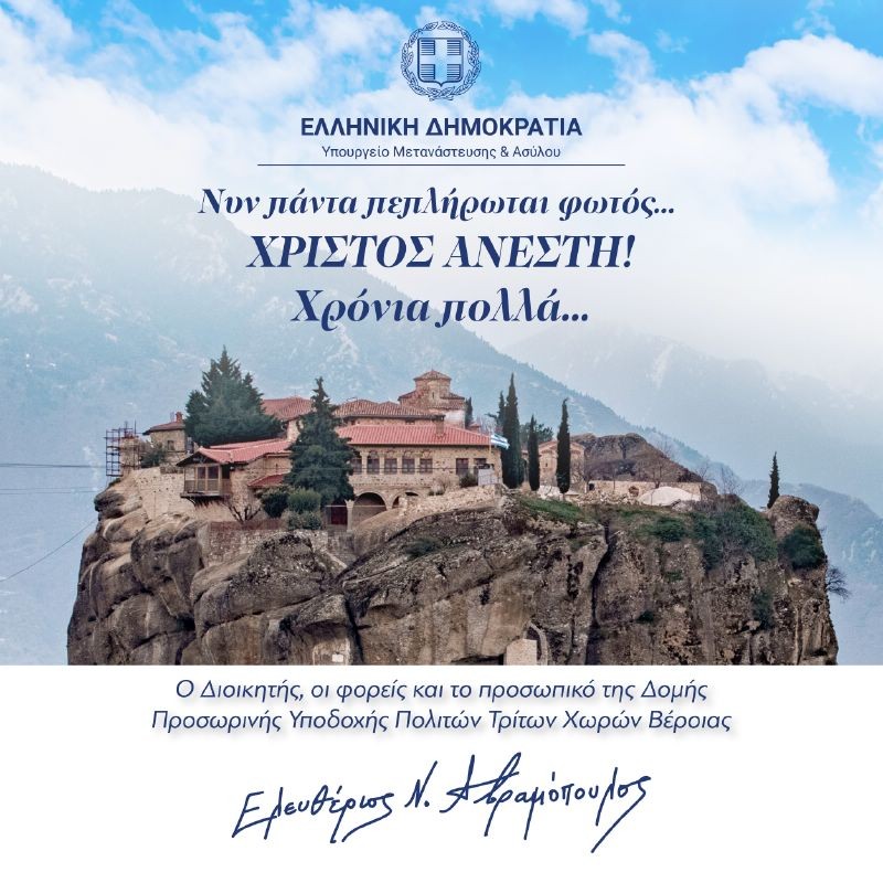 Χρόνια πολλά και Χριστός Ανέστη από τον Λευτέρη Αβραμόπουλο Ανακοινώσεις Από admin Δημοσίευση Μάι 1, 2021 -21:11 0 445 Κοινοποίηση FacebookTwitterΗλεκτρονικό ΤαχυδρομείοViber Χριστός Ανέστη. Ας προσπαθήσουμε να στολίσουμε κι εμείς την ψυχή μας κατά το πρότυπο της ωραιότητος του Αναστάντος Χριστού… Με υπομονή, όλα τα ξεπερνάμε. Χρόνια πολλά. Καλό Πάσχα!!! 0 445 Κοινοποίηση
