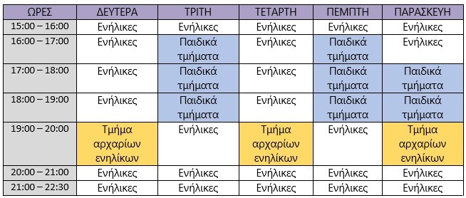Σας ενημερώνουμε ότι η προσέλευση στον χώρο, τα τμήματα αρχαρίων όπως και τα παιδικά τμήματα ηλικίας 5 – 15 ετών γίνονται κατόπιν συνεννόησης και ραντεβού.