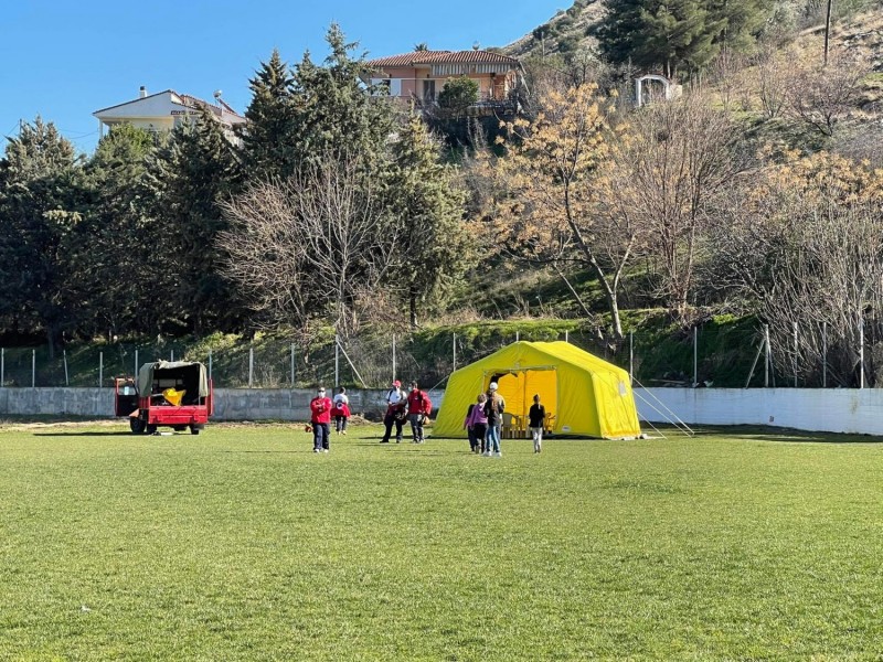 Στο γήπεδο του Δαμασίου έχουν συγκεντρωθεί οι πολίτες της περιοχής, μετά τον μεγάλο σεισμό των 6 Ρίχτερ στην περιοχή.