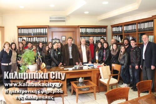 Στο Δημαρχείο Καλαμπάκας βρέθηκαν σήμερα λίγο μετά τις 12:00 το μεσημέρι μαθητές του Γυμνασίου Κρουσόβου Σκοπίων συνοδευόμενοι από τον πρόεδρο της Βλάχικης Αμφικτιονίας κ. Μιχάλη Μαγειρία και τον ταμία κ. Βασίλη Αμπατζή που είναι και πρόεδρος του Συλλόγου Φιλίας και Συνεργασίας Ελλάδος-Κρουσόβου.