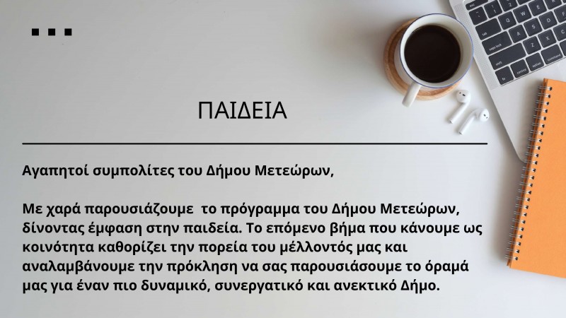 Βρισκόμαστε εδώ για να παρουσιάσουμε το Δεύτερο πυλώνα του Προγράμματος της παράταξης του Δημάρχου Θεόδωρου Γ. Αλέκου, για τον Αθλητισμό, την Παιδεία και την Κοινωνική Μέριμνα, τρεις τομείς που είναι κρίσιμοι για την υγιή ανάπτυξη του Δήμου μας.