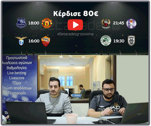 Το αγαπημένο σας στοιχηματικό σάιτ που σας ενημερώνει καθημερινά για όλα όσα αφορούν στο στοίχημα σας προσφέρει την ευκαιρία να δώσετε εντελώς δωρεάν τα προγνωστικά σας και να… βγείτε κερδισμένοι. Δείτε τα απολαυστικά βίντεο του Betarades.gr μάθετε ποιες είναι οι 4 αναμετρήσεις που προσφέρονται για προγνωστικό και διεκδικείστε κάρτες συνολικής αξίας 80€ για online Στοιχηματισμό.
