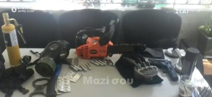 Σύμφωνα όσα ανέφερε η δικηγόρος της αδερφής του δράστη, ο 47χρονος -εκτός από το αλυσοπρίονο- είχε μαζί του τσεκούρι και άλλα αντικείμενα που μπορούν να χρησιμοποιηθούν σαν όπλα.