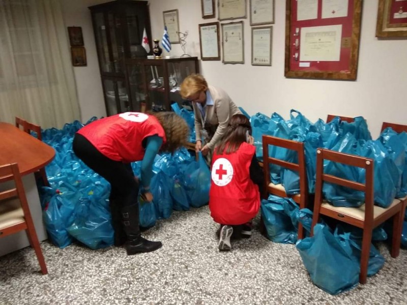 Διανομή βοήθειας σε ωφελούμενους από το Περιφερειακό Τμήμα Τρικάλων του Ελληνικού Ερυθρού Σταυρού