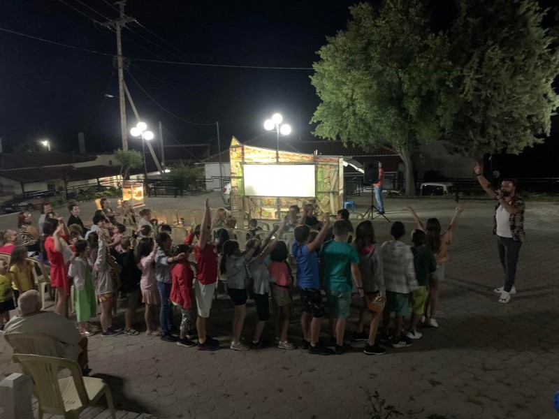 Τα μικρά – αλλά και μεγάλα… – παιδιά του χωριού που αυτό το διάστημα είναι πολλά στο χωριό, γέλασαν με τον μοναδικό Κοσμά Παναγιώκα και την παράσταση Καραγκιόζη που πρόσφερε.