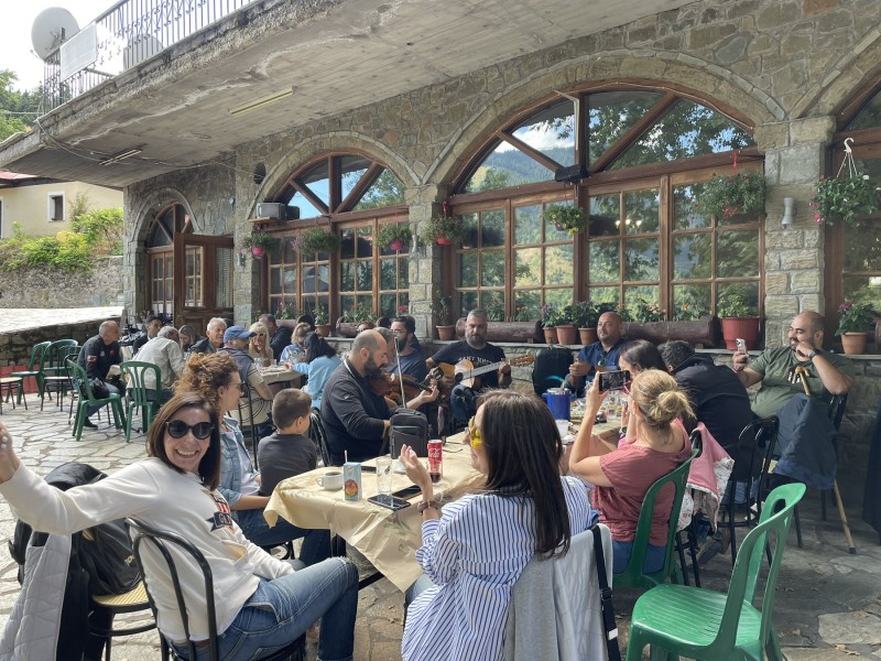 Στην Καλλιρρόη που φημίζεται για τις στιγμές διασκέδασης τον Αύγουστο, την Κυριακή το μεσημέρι στην πλατεία του χωριού στήθηκε μια όμορφη τσιπουροκατάσταση με καλούς μεζέδες και ζωντανή μουσική.