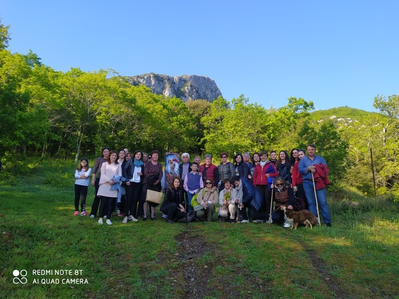 Φέτος και για πρώτη φορά, Διαβίτες και Διαβίτισσες, σε συνεννόηση με τον εφημέριο του χωριού ξεκίνησαν το πρωί της Κυριακής από την πλατεία της Διάβας, φέροντας μαζί τους την εικόνα του αγίου Γεωργίου, την οποία φιλοτέχνησε η Διαβίτισσα αγιογράφος και υπεύθυνη του ενοριακού Καλλιτεχνικού Εργαστηρίου κα. Μαίρη Κουβάτα, περπατώντας μέσα από το μονοπάτι προς το εξωκλήσι. Μόλις έφτασαν στο εξωκλήσι υποδεχτήκαμε την εικόνα του αγίου Γεωργίου και τους προσκυνητές. Ακολούθως ξεκίνησε η Θεία Λειτουργία.