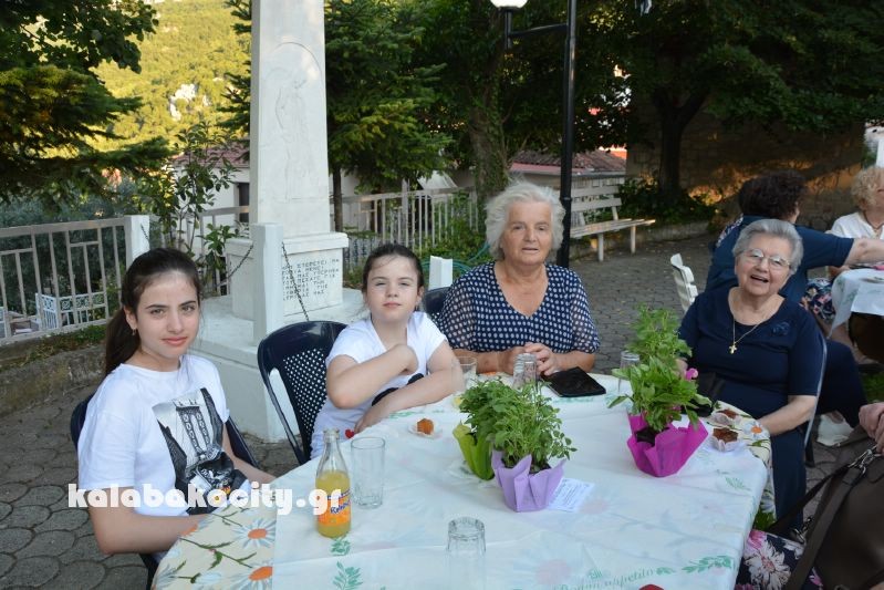 Το απογευματινό έγινε στην πλατεία του χωριού και στους παρευρισκόμενους δόθηκαν διάφορα εδέσματα όπως και από ένα γλαστράκι με βασιλικό.