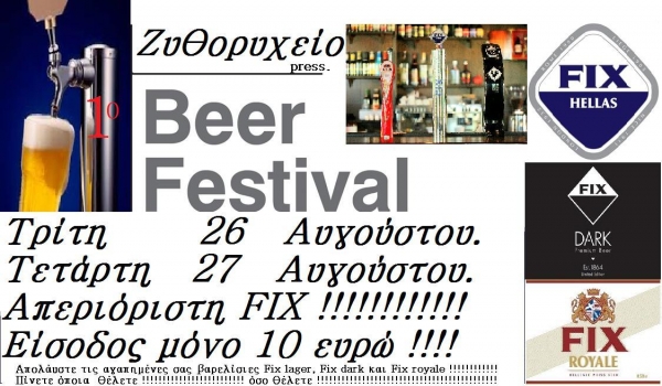 Το πρώτο φεστιβάλ μπύρας είναι πλέον γεγονός. Δυο ημέρες με απεριόριστες μπύρες στην μπυραρία “Ζυθορυχείο” της πόλης μας 26 και 27 Αυγούστου!
