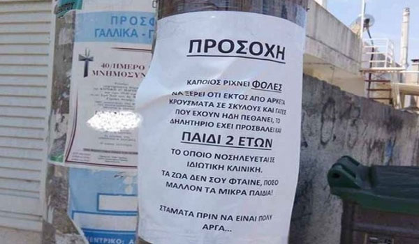Τα αδέσποτα όμως δεν… ξέρουν να διαβάζουν, οπότε το θέμα είναι να πιαστεί ο/η εγκληματίας για να γλιτώσουν κάποιες αθώες ψυχές.