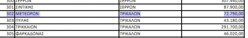 Το ποσό που έρχεται στο Δήμο Μετεώρων είναι 72.790 χιλ. ευρώ