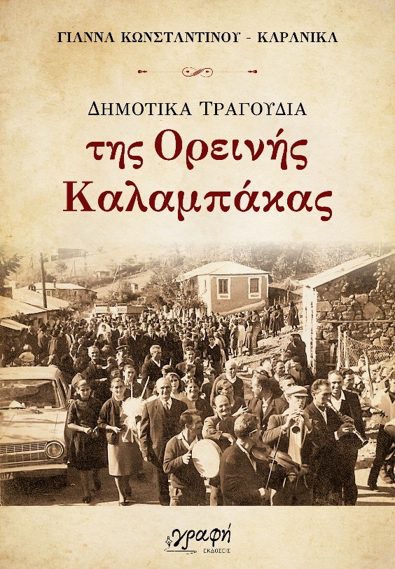 Η εργασία αυτή φιλοδοξεί να διασώσει ένα μέρος από το λαογραφικό θησαυρό των χωριών μας, που κάθε μέρα χάνεται μέσα στον διαφορετικό τρόπο ζωής της εποχής μας. Πρόκειται για μια συλλογή παραδοσιακών Δημοτικών τραγουδιών των χωριών της Ορεινής Καλαμπάκας, τη θεώρησα αναγκαία και απαραίτητη ως ιερό χρέος προς τον Δήμο της Καλαμπάκας, ώστε με βάση τις παραδόσεις, τα ήθη, τα έθιμα, τα συναισθήματα και την πρακτική εφαρμογή τους στις μικρές τοπικές αγροτικές και κτηνοτροφικές κοινωνίες, να διατηρηθούν στη μνήμη και στην καρδιά όλων μας αλλά και για να έχουν πιο εύκολη επαφή οι νέοι μας με την παράδοση, τα τραγούδια και τους χορούς.
