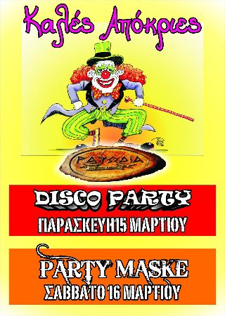 Το Σάββατο το βράδυ 16 Μαρτίου, φορέστε την αποκριάτικη στολή σας και διασκεδάστε στο πάρτι μασκέ που κρύβει πολλές εκπλήξεις!!!