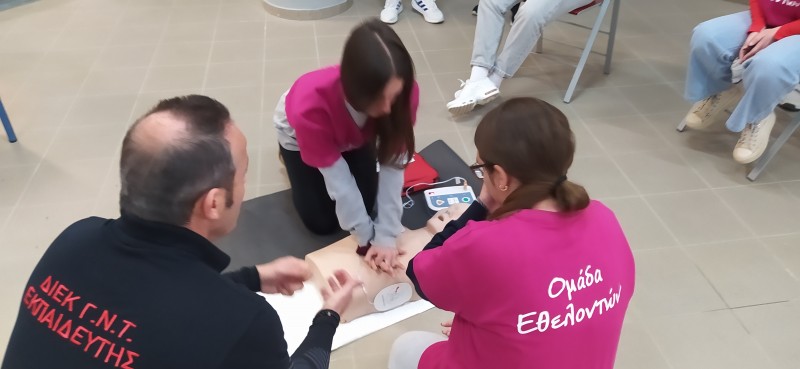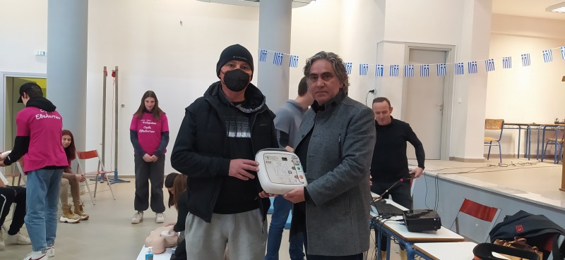 Με την ευκαιρία αυτής της «προσφοράς ζωής», καθηγητές και η ομάδα εθελοντών μαθητών του σχολείου μας, παρακολούθησαν ενημέρωση και πρακτική άσκηση σχετική με την αντιμετώπιση καρδιακής ανακοπής με χρήση απινιδωτή. Τη δράση υλοποίησαν με μεγάλη επιτυχία ο Δντής του Δ.Ι.Ε.Κ του Γενικού Νοσοκομείου Τρικάλων κ. Κατσουγιάννης Βασίλης και η εκπαιδεύτρια του ίδιου εκπαιδευτικού ιδρύματος κ. Θάνου Χρυσούλα.
