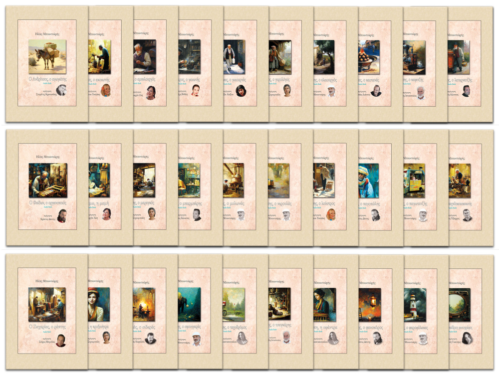 Τα 30 εξ αυτών, όλα του συγγραφέα και Σύμβουλου Πολιτισμικής Διαχείρισης, Ηλία Μπουντούρη (https://iliasbountouris.com/), περιέχουν μικρές ιστορίες με ήρωες παλιούς επαγγελματίες, όπως τις έχουν αφηγηθεί γνωστοί καλλιτέχνες, με συνοδεία ήχων της κάθε εποχής και κατάλληλα προσαρμοσμένων μουσικών του Μίκη Θεοδωράκη, του Σταμάτη Κραουνάκη & του Στέφανου Βαρελά, αναδεικνύοντας τα Ελληνικά Ξεχασμένα Επαγγέλματα.
