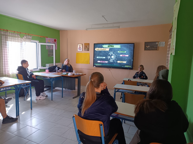 Με πρωτοβουλία του Διευθυντή και των εκπαιδευτικών του Γυμνασίου Οξύνειας υλοποιήθηκε παρέμβαση – δράση στους μαθητές/τριες του σχολείου μας από την κα Τσαραπατσάνη Γκόλφω, Συντονίστρια – Κοινωνική Λειτουργό και την κα Πρεβέντα Μαρία, Ψυχολόγο του Κέντρου Κοινότητας Δήμου Μετεώρων.