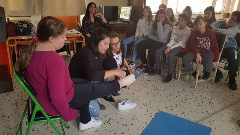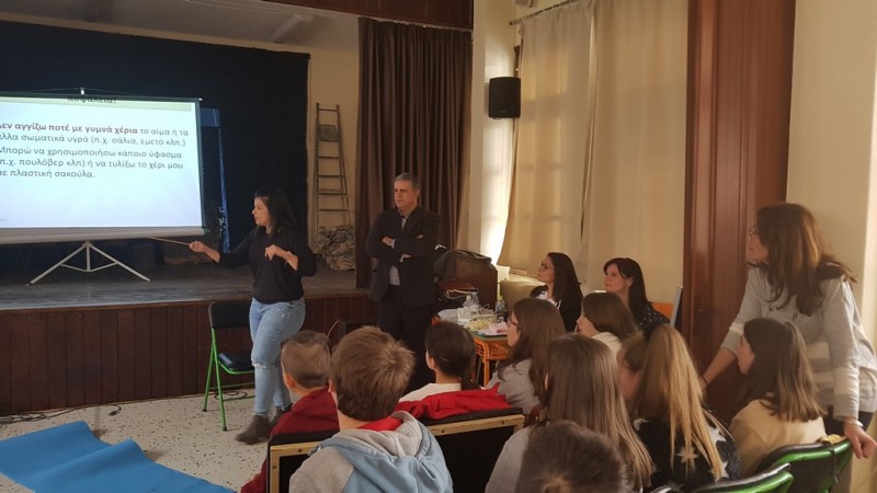 Αρχικά στις Α, Β, Γ τάξεις του σχολείου παρουσιάστηκε το θέμα, «Πρόληψη Ατυχημάτων» από τις Κοκτζίδη Στυλιανή (Αγροτική Ιατρό) και Καραλή Ειρήνη (Νοσηλεύτρια), με αναφορά στα κυριότερα καθημερινά σχολικά κυρίως ατυχήματα και την αντιμετώπιση αυτών με τις απαιτούμενες υποδείξεις και παραδείγματα με σκοπό την ευαισθητοποίηση για σωστή πρόληψη και αποφυγή παρόμοιων ατυχημάτων.