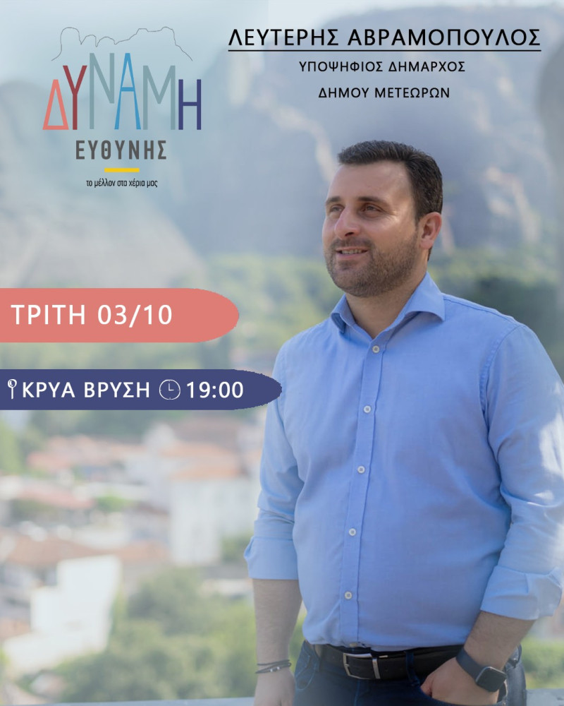 Ανακοινώθηκε το πρόγραμμα επισκέψεων του Υποψηφίου Δημάρχου Δήμου Μετεώρων Λευτέρη Αβραμόπουλου για την Τρίτη 3/10