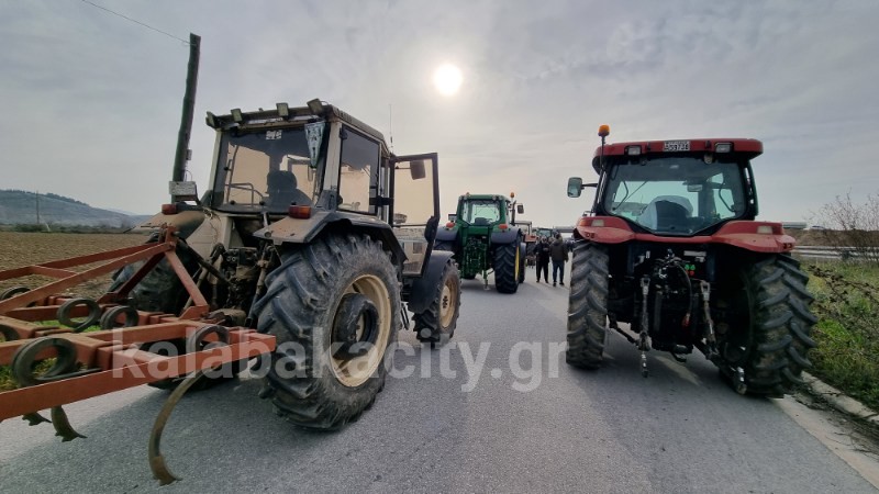 Οι αγρότες τις Βασιλικής παρέταξαν τα τρακτέρ τους στον παράδρομο της ε.ο. Τρικάλων – Καλαμπάκας αλλά έμειναν αρκετά μακριά από το σημείο επίσκεψης του πρωθυπουργού παρουσία αστυνομικής δύναμης και μηχανημάτων της εταιρίας.