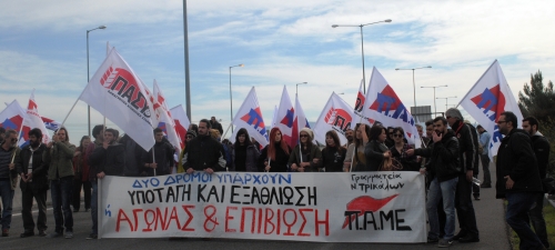Με το σύνθημα «Εργατιά – Αγροτιά, μια φωνή και μια γροθιά», έφτασαν στο μπλόκο της Νίκαιας του ΠΑΜΕ, της ΠΑΣΕΒΕ, του ΜΑΣ και της ΟΓΕ. Στο οδόστρωμα της Εθνικής Οδού, εκπρόσωποι από την Ομοσπονδία Εργαζομένων στην Κλωστοϋφαντουργία, τον Ιματισμό και το Δέρμα, των εργαζόμενων της ΕΛΒΟ και των εργαζομένων στην «Coca-Cola» απηύθυναν χαιρετισμούς, τονίζοντας ότι μόνο ο συντονισμένος αγώνας εργατών, αγροτών, αυτοαπασχολούμενων, μπορεί να αναχαιτίσει την ενιαία αντιλαϊκή πολιτική