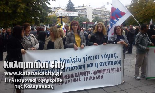 έξω από super market των Τρικάλων μιας και οι μεγαλέμποροι και οι μεγάλες αλυσίδες καταστημάτων είναι αυτοί που πρωτοστατούν στην κατάργηση της Κυριακάτικης Αργίας με άνοιγμα και την περασμένη Κυριακή.