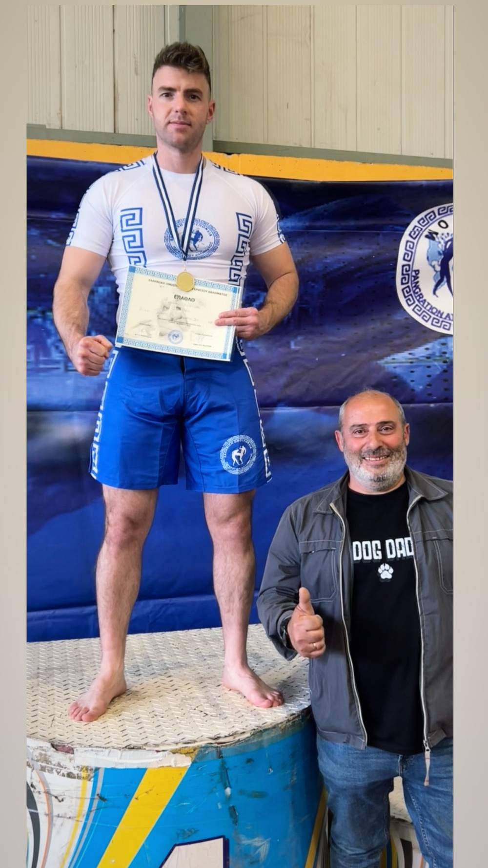 Εκεί ο ΑΧΙΛΛΕΑΣ ΓΚΟΥΜΑΣ κατέκτησε δύο χρυσά μετάλλια, το ένα στο ΑΓΩΝ ΠΑΓΚΡΑΤΙΟΥ (πλήρης επαφής με πάλη) και ένα στο ΠΥΞ ΛΑΞ (κικ Μποξινκ)