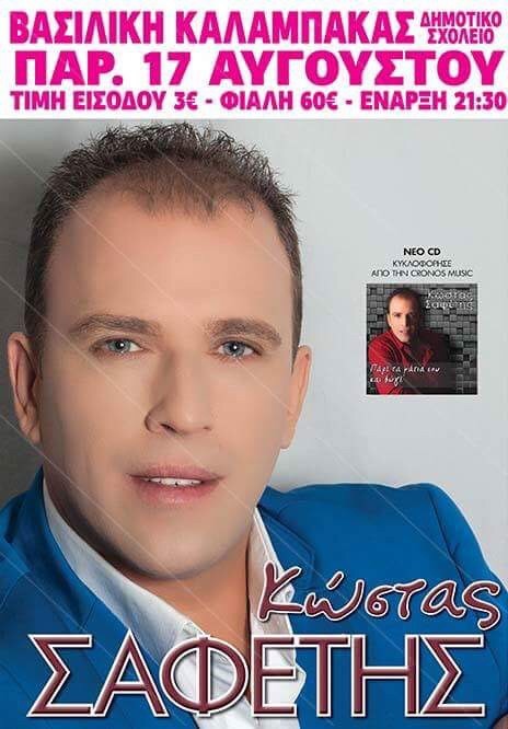 Θα διασκεδάσετε με τον Κώστα Σαφετη στο τραγούδι και τον Παναγιώτη Πλακιά στο κλαρίνο.