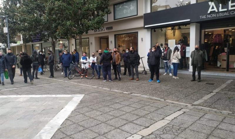 Οι επιχειρηματίες της στάσης συγκεντρώθηκαν έξω από το Δημαρχείο και εξέφρασαν την αγανάκτηση τους για την κατάσταση που βιώνουν ένα χρόνο τώρα, εξαιτίας της πανδημίας.