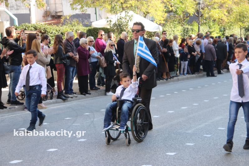 Ιδιαίτερα συγκινητική ήταν η στιγμή στην παρέλαση της Καλαμπάκας όταν o μικρός μαθητής Γιώργος Μάνης πέρασε με την σημαία ψηλά μαζί με τους συμμαθητές του από το 3ο Δημοτικού Σχολείου Καλαμπάκας.