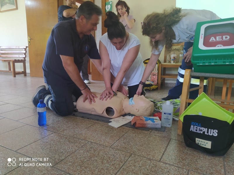 Κατόπιν αιτήσεως της ενορίας μας, το Σάββατο 4 Ιουνίου 2022, στην αίθουσα του Τοπικού Κοινοτικού Συμβουλίου Διάβας, σε συνεργασία με τον Πρόεδρο της Διάβας κ. Φώτη Αλέκο, πραγματοποιήθηκε η εκπαίδευση πάνω στη χρήση του απινιδωτή, στις πρώτες βοήθειες και ΚΑΡΠΑ (Καρδιοπνευμονική Αναζωογόνηση). Τρεις αξιόλογοι εκπαιδευτές -νοσηλευτές με αγάπη για το λειτούργημά τους και μεγάλη μεταδοτικότητα, η κα. Μπάτζιου Ιφιγένεια, ο κ. Ρακοβίτης Βασίλειος και ο κ. Οικονόμου Γεώργιος, εκπαίδευσαν τους δώδεκα (12) συμμετέχοντες στο πρόγραμμα, το οποίο εμπλουτισμένο πλέον θα πραγματοποιηθεί το ερχόμενο φθινόπωρο και πάλι. Ευχαριστούμε θερμά τους τρεις εκπαιδευτές για τα μαθήματα ζωής που μας δίδαξαν και για την χαρά συνάντησης μαζί τους. Ο Θεός να τους ευλογεί σε κάθε στιγμή της ζωής τους για το ύψιστο λειτούργημα που επιτελούν.