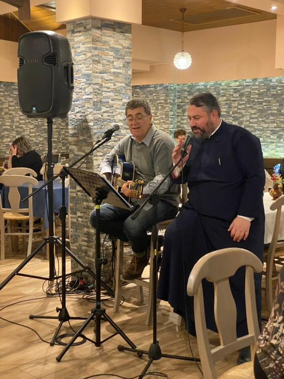 Έκπληξη αποτέλεσε το γεγονός ότι ο εφημέριος μας π. Ηρακλής Φίλιος πήρε το μικρόφωνο στο χέρι και τραγούδησε το τραγούδι ‘’Πούλα με’’ από το γνωστό συγκρότημα Πυξ Λαξ και το ‘’Γέλα πουλί μου’’ των αδερφών Κατσιμίχα.