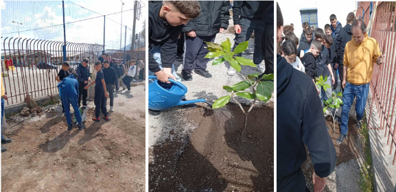 Οι μαθητικές κοινότητες των δύο γυμνασίων προχώρησαν στην φύτευση 12 δέντρων στη αυλή του σχολείου. Μεγαλώνοντας τα δέντρα όχι μόνο θα ομορφύνουν τον προαύλιο χώρο και την πόλη μας, αλλά θα βάλουν το δικό τους λιθαράκι σε ένα περιβάλλον με περισσότερο πράσινο και οξυγόνο.