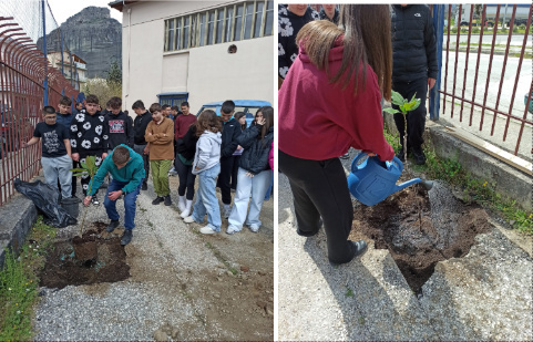 Οι μαθητικές κοινότητες των δύο γυμνασίων προχώρησαν στην φύτευση 12 δέντρων στη αυλή του σχολείου. Μεγαλώνοντας τα δέντρα όχι μόνο θα ομορφύνουν τον προαύλιο χώρο και την πόλη μας, αλλά θα βάλουν το δικό τους λιθαράκι σε ένα περιβάλλον με περισσότερο πράσινο και οξυγόνο.