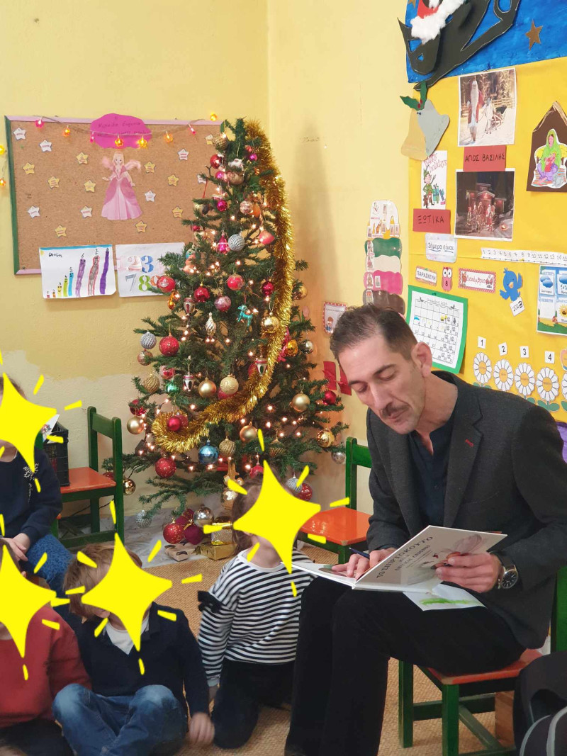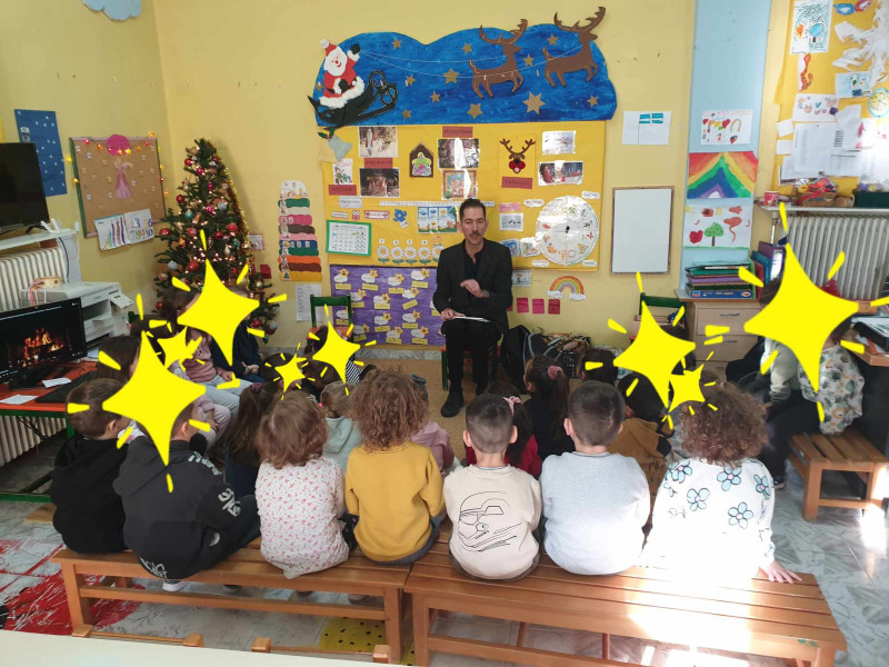 Σήμερα 11-12-23 στα πλαίσια του εργαστηρίων δεξιοτήτων με θέμα διατροφή και στοματική υγιεινή το νηπιαγωγείο μας επισκέφθηκε ο συγγραφέας και ηθοποιός κος Ζήσης Παπαιωάννου ,όπου παρουσίασε το βιβλίο του “Το σπιρτόκουτο και η λευκή λίμνη”.